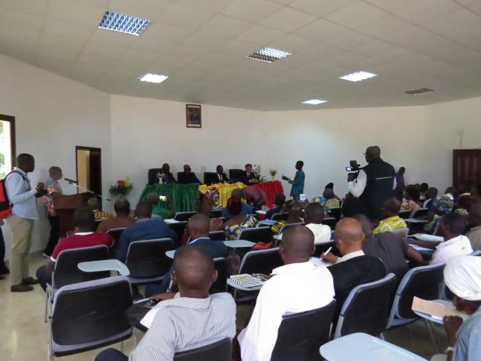 2019年11月12日,商务部主办、中国热带农业科学院承办、品资所协办的刚果(布)木薯生产与加工及热带果树种植技术海外培训班在刚果(布)Lekoumou省首府Sibiti市隆重举行开班典礼。出席开班典礼的有代表刚果(布)农牧渔业部部长的农业局局长JEAN•PAUL nBou、Sibiti副市长ANTOINE•TOUTOU、Sibiti副县长GISELE•OGNAMI MBISSA女士、农业技术示范中心刚方主任ONGUALA•PAUL一行、交流合作品资所陈业渊所长一行四人以及本次培训班100名学员及刚果(布)主流媒体记者。